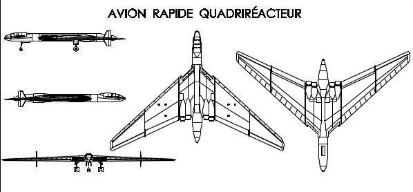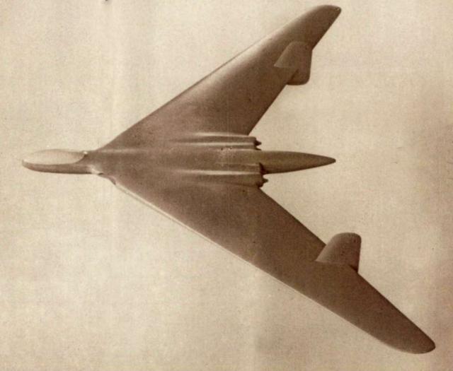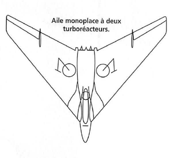 因此另外提出了一个面积为600平方米、配备6台ATAR 103的飞翼飞机具有45米的翼展和180吨的起飞重量,旨在展示飞翼设计结合喷气驱动的未来的大型客机,其巡航速度可达1000公里/小时,航程可达10000公里。在基础形状上,可以实现良好的乘客空间,达80平方米的客舱面积提供90个乘客座位,并且在纯飞翼布局中拥有足够的头部空间。